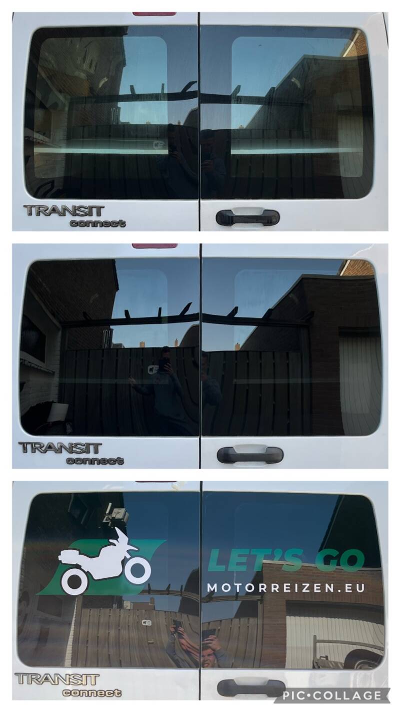 Deze Ford Transit Custom van LetsGoMotorreizen.eu voorzien van zijn huisstijl. Daarnaast hebben wij de achterruiten voorzien van 18% lichtdoorlatende blindeer folie om het zicht naar binnen te verminderen en het logo beter tot zijn recht te laten komen.